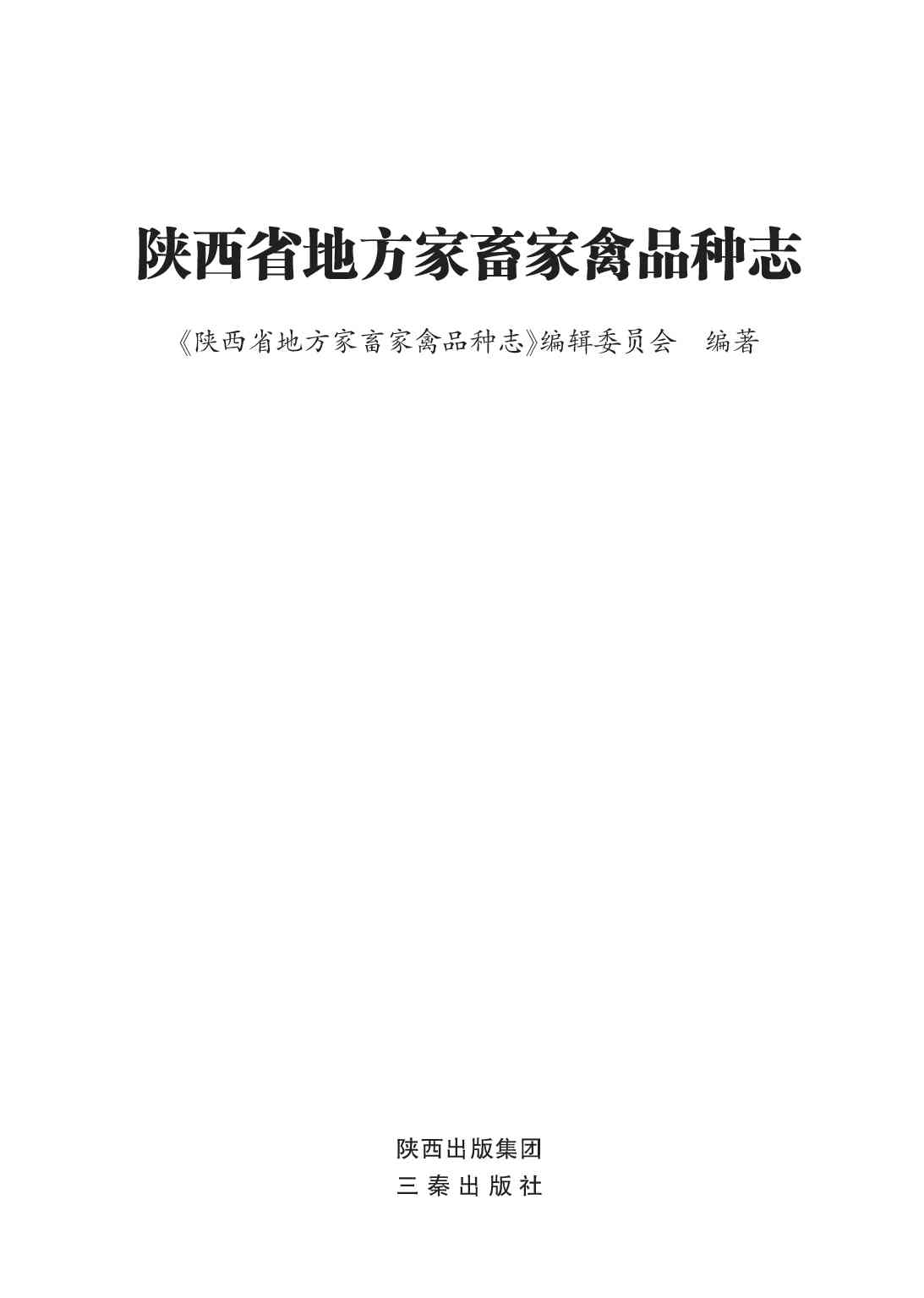 编纂单位:陕西省地方家畜家禽品种志编辑委员会